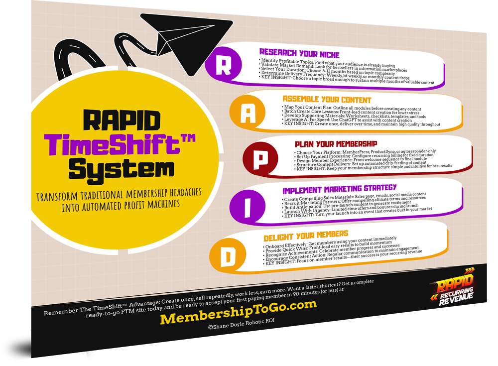 It's called the R.A.P.I.D. TimeShift™ System – and it works by "time-shifting" your business model from unpredictable one-off sales into a fixed-term profit machine that: